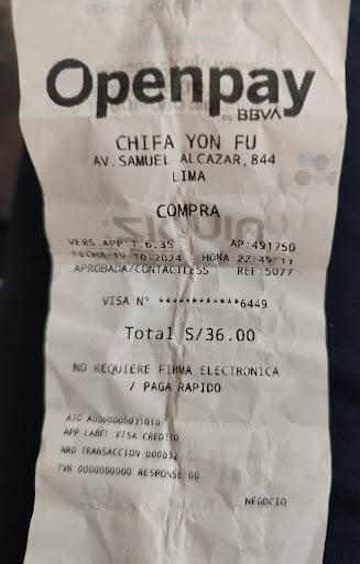Read moreA mi novio lo trataron mal una mesera le respondío de mala forma mientras yo estaba en el baño, pensaron que el estaba solo y mi novio pidió amablemente que le trajeran unos cubiertos más para mi ya que íbamos a compartir el plato y la señorita mesera respondió de mala gana "porque no me aviso antes, encima solo comprara un plato de chaufa". Por otro lado la comida está pasable, pero el servicio muy malsobretodo la señorita que atendió a mi novio que es de contextura ancha. Mi recomendación sería si no le gusta trabajar...
