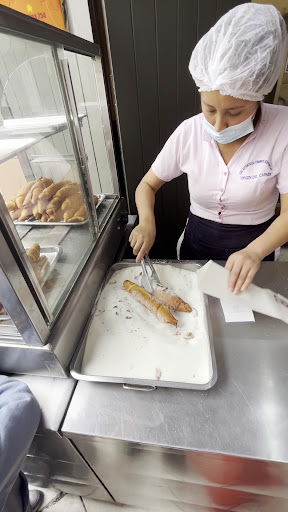 Read moreFui a comprar churros por ser su día, la cola como siempre en estos locales es inmensa, estuve haciendo cola por aproximadamente 40 minutos, por ser tarde y era el único abierto, creo que se concentro mucha gente por esa razón, los sabores que tienen son de crema pastelera, manjar blanco y chocolate, una de las cosas que me parece pueden mejorar, es la distribución de su tienda ya que la caja para pagar está ubicada la fondo del local, y justo es donde están las mesas y sillas que los comensales usan causando molestia y al otro lado está el despacho, así que eso es un inconveniente, de su sabor es cosa aparte, son muy buenos y te los entregan calientes, cosa destacable, si volvería a ir a comer sus...
