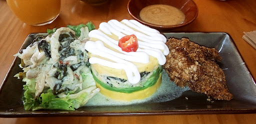 Read moreEs un grato placer encontrar pequeños lugares donde se pueda comer de manera saludable, vegetariana y sin altos costos. El sabor es muy bueno 9/10. El servicio a la mesa es cordial y amable, aceptable. El ambiente es acogedor, aunque el local tiene tan solo 6 mesas para 2 personas cada una. Es, pues, un local pequeño, pero digno y placentero de visitar ocasionalmente. Solo hay platos a la carta, me parece. Se gasta un promedio de 26 soles por persona, sin incluir bebida, entrada no postre. Con todo ello, se gasta 35 por persona. Recomiendo muchos los wantanes como piqueos y las hamburguesas...