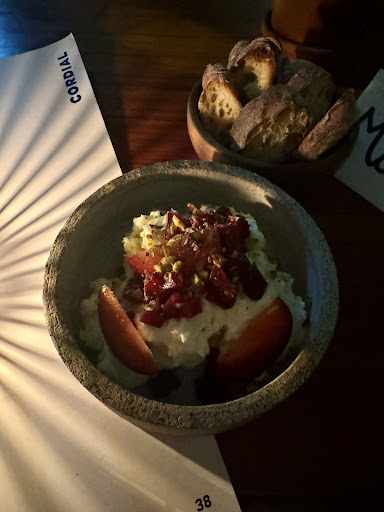 Hola. Estoy dejandoles esta reseña con las mejores intenciones. Fui a comer aquí hace una semana con unas amigas. Vi por ig que tenían a la cocinera residente, vi la selección de vinos y me enganchó❤️ Trabajo en la gastro hace años, soy Manager en un restaurante fine dining en Zürich y muy apasionada por los vinos naturales, por lo cual me encantó la idea de Cordial al ver la selección q tenían en el menú. El servicio muy lindo y todo pero por desgracia al lugar le falta ALMA. No se le está sacando el jugo. Ejemplo. Le dije a la camarera que quería probar vinos naturales. Ella muy amable me aviso q regresaría con recomendaciones. Sin embargo me termina recomendando los dos vinos de la casa...teniendo una selección tan grande. Como gastronoma les recomendaría a los dueños q gastarán en entrenamientos profundos con sus camareros para q estos sepan más sobre los vinos o si no.. Si ven q una clienta a venido mostrando interés pueden mandar al sommelier de una. Tampoco se hizo una muy buena presentación a la cocinera del día. Me parece q esta hubiese podido tbn salir ella misma a saludar a los clientes. Son detalles q hacen de un lugar como tal más especial❤️ los felicito igual x su carta /menú y sus vinos deliciosos y el lugar lleno de arte pero deben ponerle más amor, más alma, más atención personalizada al cliente... Quizá contar un poco de la historia de cordial cuando un cliente entra y recomendarle vinos antes de q uno...