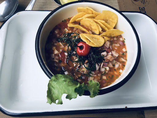 El restaurante está en un segundo piso y el tercero es una terraza, así que hay que tener eso en cuenta si alguien quiere ir en silla de ruedas por ejemplo. Primero aspectos positivos: los platos tienen buena pinta, se ve que es un lugar moderno y limpio, brindan chilcano de cortesía. Lo que no me gustó mucho es que demoran en atender aún cuando no hay mucha gente, demoran en servir lo que se ordena, la carta es un poco limitada en opciones y la relación precio/calidad no era tan buena. Tenía un precio un poco alto para algunas cosas pero el sabor o la calidad no lo valía tanto. No cubrió mucho mis expectativas pues estuvo...