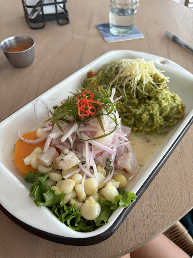 Great spot for some Peruvian ceviche, with a pretty large menu of other seafood dishes as well. Loved the duo plate where you could try both a ceviche and a hot dish. I got the ceviche and arroz con ceviche - which was a green rice with shrimp and fish (I asked for it without scallops) and the flavor was incredible. It’s a lot of food and is great for the indecisive. The ceviche was a whitefish with onions and a citrusy / leche de Tigre sauce....