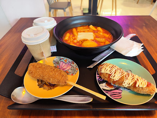 La comida fue una mezcla de aciertos y decepciones. El tteokbokki estuvo bastante bueno, pero las banderillas no valen lo que cuestan. Lo más cuestionable fue el precio del té: pagar 6 soles por una bolsita genérica que cuesta alrededor de 20 céntimos, sin endulzantes ni siquiera azúcar en la bandeja (tuve que bajar a pedirlos), me parece un exceso. Pero está "bien", supongo.