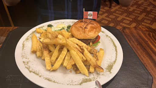 Sobre la comida Nada rescatable pedimos una ensalada y una hamburguesa Angus la hamburguesa estaba muy seca no se sentía la diferencia de la carne Angus tenía papas muy secas y todo el plato estaba repleto de orégano el pan estaba muy seco y la salsas estaban regulares. La ensalada para el precio de 35 soles nada rescatable muy mala ensalada, la presentación también tuvo orégano por todo el borde del plato la salsa de la ensalada no estaba muy buena y tenía muy poco pollo a pesar de qué era una ensalada César, fue una ensalada muy simple y sin gusto.