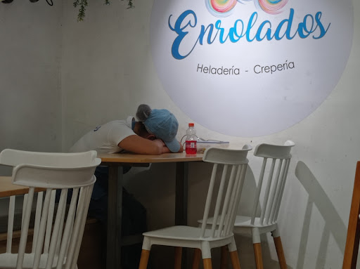 Read moreUn lugar donde tienes que rogarles a las azafatas para que te atiendan, eran las 4 de la tarde y el lugar empezaba a llenarse, está bien que tengan hora de refrigerio pero que se acuesten a dormir en una mesa a vista de todo el mundo es de muy mal gusto. Porque nadie venia a atender, tuvimos que ir al otro lado para casi rogar que nos cobren, las crepes desmejoradisimas y la jalea de majar blanco horrible. A parte la música de cabaret a todo...