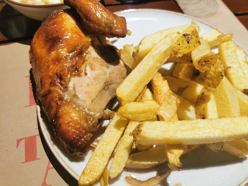 Pedimos 1/2 pollo , sabroso y suave, excelente sabor. Pedimos una guarnición de papas al Chimichurri, sin tanto que comentar, no era lo mejor. Las papas fritas regulares, excelentes y crujientes, en su punto. Para cerrar con broche de oro, un exquisito chesscake de fresa que nos dejó con ganas de más, muy recomendable.