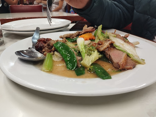 El chancho asado que compre y el min Pao delicioso pero la atención malisima, tuve que esperar buen rato para que me dieran el min Pao así que opté con mi mamá por sentarnos en la parte del restaurante y esperar, cuando nos entregaron el pedido quisimos comer el min Pao y le pedimos a una de las artas que por favor nos prestará un cuchillo y nos respondio que las personas que compran en la entrada del restaurante que por cierto es parte del restaurante no tienen derecho a sentarse en las mesas a comer lo que compran y si lo entien quizá en la hora de almuerzo ya que lo que venden en la entrada es mas para llevar pero ya habían cerrado el restaurante y nos habíamos demorado por que no salían los min Pao mi madre y yo estábamos con muchos paquetes y ya que habíamos esperado tanto solo queríamos comer ahí, que lástima que eso baje de una u otra forma la calidad a ese restaurante y mucha más pena sentiría si ese comportamiento es avalado por los dueños. Además se me olvidaba comentarles que mi ticket se extravió estrr tantas cosas que tenía y no me entregaban mi pedido y yo le decía a la cajera estoy a dos pasos tuyo y no le puedes decir a tu compañera que no me a entregado nada, que hago si no lo encuentro y lo único que respondía era busque su ticket, busque su ticket, bueno en fin, como les decía al principio la comida rica pero si por eso debo aguantar un mal trato, prefiero ir...