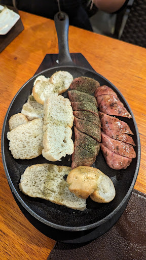 Read moreEl lugar es agradable en ubicación y limpieza. Los cortes vienen por peso a partir de 100 gramos. El pan que ofrecen de entrada es "agradable" pero no sorprende en lo absoluto. Los chorizos de hierbas finas tienen un sabor sencillo. El corte que pedí fue un Tomahawk, vi el corte al inicio antes que lo preparen, no me convenció el marmoleo (grasa intramuscular) muy pobre, no parecía un corte Angus de gran calidad. El exceso de grasa que tenía el corte en la parte externa era excesivo en algunos lados. No tiene un gran sabor la carne. La atención no es de la mejor, no cambiaron los platos cuando empezamos a comer la carne y el cuchillo que daban para la carne era demasiado básico, muy incómodo realizar los cortes a la carne. Las papas que acompañan a la carne no son un buen complemento, demasiado cargado y fuerte en sabor, sobre todo para quienes buscan una pausa al paladar luego de saborear la carne. Cuando se solicito para llevar el Tomahawk no tuvieron la delicadeza de tapar el hueso con papel aluminio o similar, el hueso estaba expuesto a la interperie. Considerar además que hay un 25 % de adicional por el servicio...