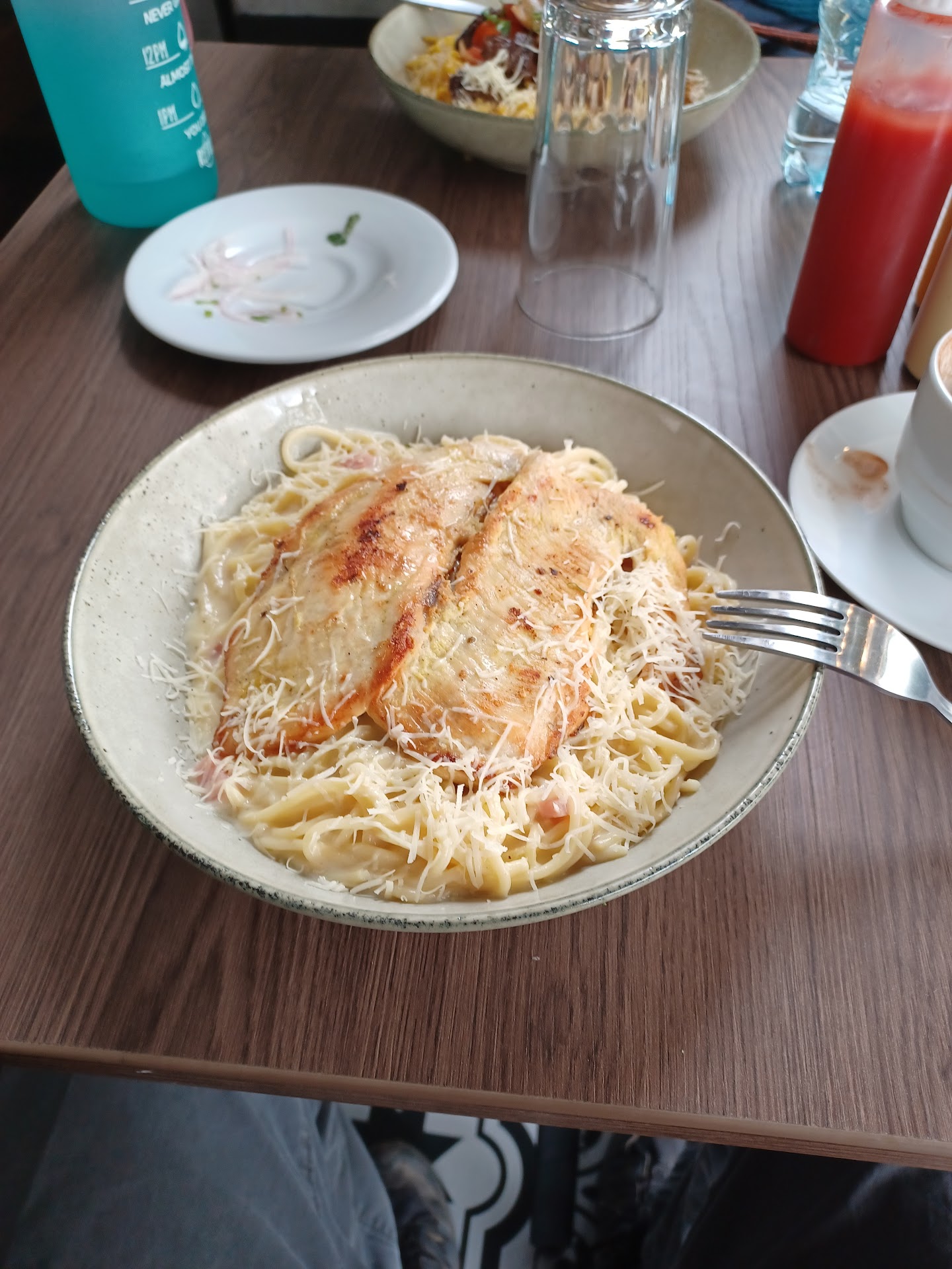 We found this spot while searching for a place to eat. It's clean and seemed to have a good selection of plates. They have a good selection of bread and deserts. We ordered from the menu. We ordered two pasta dishes - fetuchini con pollo ala plancha and pasta ala ahuaycayna con lomo saltado.