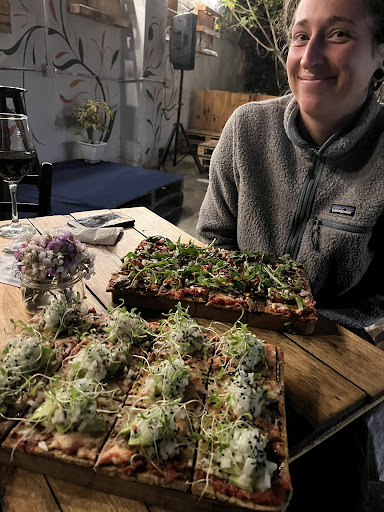 Myself and a friend went last night to "Healthy Pizza - Saludable." It was my second visit and her first. We both agree the pizza is oustanding, and we really like the thin, crispy, whole grain crust. They'll do a "half and half " pizza at no additional cost. The staff is friendly and the ingredients seem to be top notch. They serve dessert, reasonably priced bottles of wine too, beer, and natural juices. One thing to be aware of, the entry door/gate is normally locked, so you need to ring the buzzer for them come and open the door. Don't let that put you off though. The visit is well worth the small inconvenience. Outside of normal business hours there is no sign at the door. We loved the "Nocturna" and...