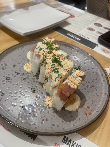 El ambiente es agradable, lindo el lugar y cálido, se puede pasar un buen momento. La atención del personal es A1. Muy atentos, muy serviciales y sobre todo están prestos al llamado. La carta podría variar. Hay restaurantes de sushi mucho más variados y con mayor variedad de makis con mezcla de sabores y sumamente exquisitos, que esté restaurante está dejando de lado... Sus makis son buenos, pero no volvería.