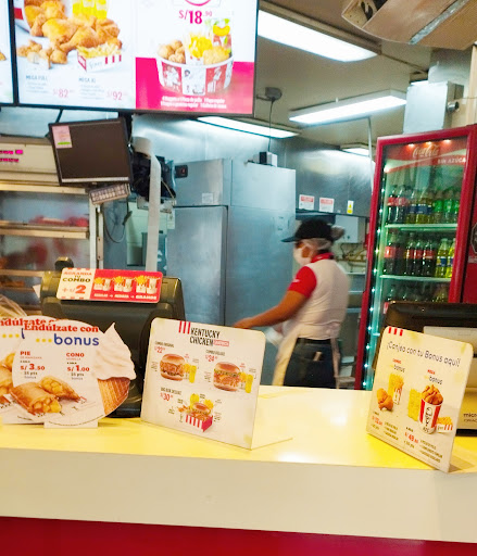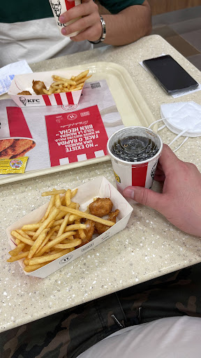 Ambiente: el ambiente era horrible. El suelo estaba sucio, medio KFC olia a pies, y habian niños corriendo fuera de la zona de juegos. Mientras comía un niño vino corriendo y se choco con la silla, nos asustamos terrible. El niño se pusp a llorar por que en su caída se calló de cabeza y luego al rato volvio a jugar y gritar con todos los niños y digo, esta bien que juegen pero que lo hagan en la zona especial de juegos no por todo el restaurante y tambien que limpien un poco el lugar.