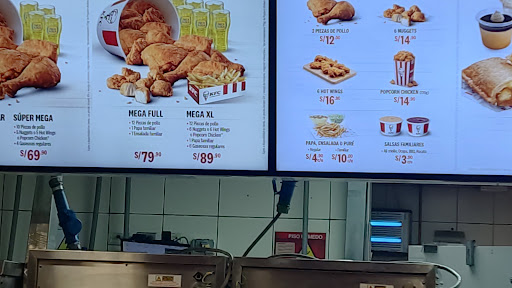Me deje llevar por el nombre, KFC, domingo 7 de la noche, una cola para pagar de 15minutos, en la cajera 5 minutos por la lentitud de la única cajera, además de conversarte : quiere crispo o jugoso, quiere agrandar su bebida, quiere llevar la promoción tal, para comer acá o para llevar, Co ca Fanta o spray, paga directo o en cuotas... Tanto para comer un pollo..y le pregunté cuánto demora en atenderme el pollo y me dice 25 minutos .. Tanto... Y cronometre y demoraron 34 minutos..una hora en dicho KFC. sin comer hasta ese momento. Después el local olía a pezuña, y esto porque se sacan los zapatos los chibolos para jugar en el grass sintético.. sin mentir.. aparte que no había mesas seguro por la larga espera.. y que creen .. mi pollo estaba crujiente pero parecía sacrificado recién porque todavía le vi como una espumita .. mi 56 soles mal gastado.. me imagino debio ser por la cantidad de personas que querían comer, y el personal que no se abastece. La falta de supervisión en la cocina y retirar esos juegos que hacen que se saquen las zapatillas...y los chicos como muchos no se lavan los pies.. era como el olor de un bus interprovincial que viene de Pucallpa y lo tomas en por Chosica.. después de 22 horas de viaje ..olor a KFPezuña.. No quiero desprestigiar pero necesitan una reingeniería dicho local de Mega plaza por el buen...