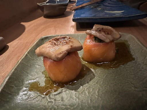 But the nigiri belly foie is what I’ll think about for years. A strip of salmon belly, stuffed with chimichurri, topped with a slice of foie gras, torched at the table until it melts slightly into itself. It’s the kind of dish that stops the conversation. Every element played its part—rich, bright, silky, seared—perfectly composed, perfectly executed. It was one of the best single bites of food I’ve ever had in my life. We came back the next night just for that.
