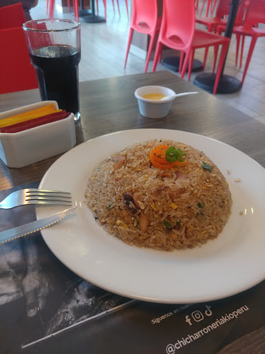 En cuanto a la comida, pedí el arroz chaufa con chancho al cilindro y debo decir que estuvo bastante bueno. La carne de chancho era abundante y tenía ese toque ahumado que le da el cilindro, lo que le dio un sabor bastante especial. Además, el chaufa no estaba grasoso, lo cual es un punto a favor. Sin embargo, en mi opinión personal, siento que le faltó un poco más de huevo revuelto para que tuviera el sabor clásico y equilibrado del chaufa tradicional.