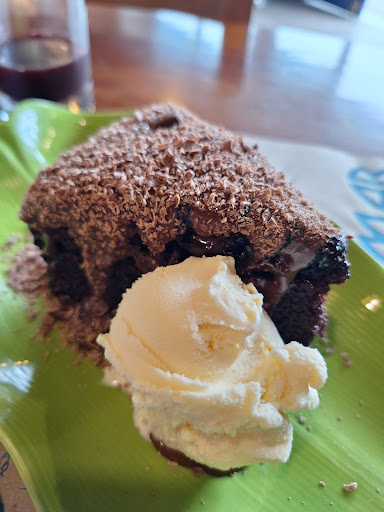 Read moreDesde mi punto de vista, atención correcta, te reciben con canchita y chifles y luego que se acaba esto te dan un chilcano de cortesía. Pedí un trío marino: costo S/ 56 y venía: ceviche de pescado, causa de pulpa de cangrejo y arroz chaufa de mariscos. El ceviche estaba agradable aunque si se excedió en acidez que se camuflaba con el pedido de extra picante, la causa está rica, me quedo chica y el arroz con mariscos estaba interesante, un sabor bastante al wok, algo excesivo de aceite pero rico. La chicha muy rica, el postre de chocolate con helado de la receta de la abuela S/ 20, fue lo mejor, demasiado rico. El otro trío, era un tridente: S/ 56 y venía: ceviche de pescado, chicharrón de pescado y arroz chaufa de pescado. Nuevamente el ceviche si sentía excesivo la acidez en este caso era muy notorio xk se pidió sin picante, el chicharrón muy rico y el chifa de pescado nuevamente notamos el exceso de aceite. Como experiencia nos dimos el gusto pero creo que sólo pediría el postre para llevar porque algo que siempre me llama la atención es que cuando pagas te dicen si vas agregar propina, en este caso ya estaba en el recibo el 10% de propina, menos mal la persona que nos vino a tomar la cuenta, que no era la misma que nos estaba atendiendo, preguntó si queríamos añadir servicio, así que es a elección del comensal, por lo que dudo mucho...
