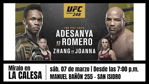 Evento 7 de Marzo: Adesanya Vs Romero/Zhang Vs Joanna Ufc 248 en La Calesa