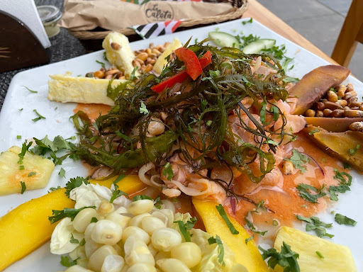 Read moreNo está frente al mar, pero ni falta que hace, porque te ponen el mar en tu plato!!! Llegué en domingo, hice unos pocos minutos de fila y ahí llegó don Rodolfo, el dueño, que es un gran conversador. Me reto con su arroz con mariscos, que aclaro era más mariscos que arroz. Y debo decirles que el plato cumplió! Es el mejor arroz con mariscos que he probado en Perú. Ya puedes ver por aquí la foto... Los mariscos en su punto, una cocción en su punto y se pudo sentir la frescura de los mariscos. Los platos, nos aclararon, son abundantes, pero no en el concepto comida a granel. Los platos mejor pueden ser llamados: generosos! Es decir, servidos sin miseria y con una presentación exquisita. Probé el ceviche, 10 de 10, con unas atrevidas porciones de mango que bañadas en "leche de tigre" le dan un sabor extraordinario. Entre los comensales teníamos un grupo con deseos de comer carne, entonces nos atrevimos a pedir el tradicional lomo saltado. Estuvo delicioso. Otro platillo que pedimos, fue el pulpo a las brasas. Excelente. La carta de bebidas peruanas tiene un pisco sour mango que me sorprendió. La Chicha morada, bastante buena. Probé la "jalea de mariscos", no tiene que ver con el sentido de "jalea" en algunos países, sino con una suerte de mariscos y algas capeadas, servidos con yuca y otras cosas que lo hacen una fusión deliciosa. No fue mi favorito porque no disfruto las comidas fritas, pero para quienes gustan de algo frito, les va a encantar. Me sorprendió la velocidad con que fuimos atendidos, los platos estaban en nuestra mesa muy rápidamente. Al final comimos un postre, que no me acuerdo cómo se llama, pero eran unos plátanos "empanizados" que tenían que sumergirse en una salsa de higos con un toque ligero de picante que los hicieron bastante buenos. Sin duda es un lugar al que regresaré. Se me olvidaba, nos llevaron de cortesía un poco de maíz tostado que fue un buen arranque de la...