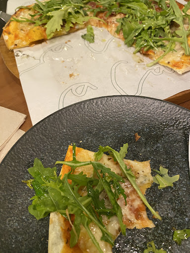 Comida: 9/10. Muy rica, especialmente si te gusta la masa ultra delgada. Eso sí, la base de tomate tiene un toque dulce que puede no ser del agrado de todos, así que tenlo en cuenta si prefieres sabores más neutros o salados.