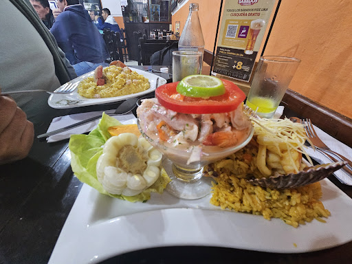 Read moreRestaurante conocido en la zona. Los platos exageradamente abundantes para una persona de peso normal; eso sí, los excesos de algunos platos con ingredientes baratos como arroz en lugar de marisco. El arroz con marisco "Virrey" lo ponen con manitas de cangrejo, pero tan pequeño, que es casi imposible sacar algo de el y sin "tenacillas" para partirlo; así que podrían romperse alguna pieza dental. El Ceviche "Matrimonio", Ceviche de pescado indefinido y dos super causas, además de muy abundante, mi invitado lugareño dijo estar rico. No fui capaz de terminar el plato...