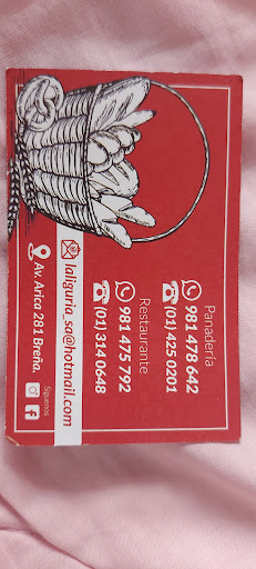 LA PANADERÍA LA LIGURIA, ES UNA DE LAS MÁS ANTIGUAS DE LIMA Y DE RAÍCES ITALIANO. PREPARA LOS MÁS RICOS PANES, PASTELES DULCES Y SALADOS, BOCADITOS, PANETONES, TURRÓN DOÑAPEPA (todo él año), LOS EMBUTIDOS DE PRIMERA, VARIEDAD DE JAMONES, CHICHARRÓN, RAVIOLES, CAFÉ. LOS PREFERIDOS :PAN FRANCÉS, CHANCAY, PAN DE MOLDE, KEKE INGLÉS, LOS SANGUCHES (bien servidos), LAS EMPANADAS, PASTEL DE ACELGAS, LOS BOCADITOS, LAS TORTAS, EL TURRÓN EL CAFÉ, CÓMO VERÁN TODO ES DELICIOSO. TAMBIÉN TIENEN UN PEQUEÑO SALÓN DONDE PUEDES IR CON LA FAMILIA Y AMISTADES A DESAYUNAR, ALMORZAR Y CENAR. Y SÍ ESTÁS DE PASO POR AHÍ, PUEDES CONSUMIR DENTRO DE LA PANADERÍA, TE SALE MÁS ECONÓMICO.