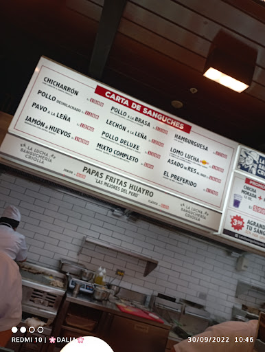Read moreBuen sabor pero ojo hay que tener cuidado pague para que me agrandan el sanguche adicional pero cuando llego a la mesa fue una vergüenza me trajeron un pan cortado en en dos y en cada mitad había tres trocitos de chicharrón de un centímetro y medio por lado y dos lonjas de camote reclame y me dijeron disculpe sr me volvieron a dar otro pan con un poco más de chicharrón si no me quejo pagaba más y me.daban lo mismo estafan a la gente tienen que tener mucho cuidado cuando coman ahí por atender rápido te dan lo que sea y el.jugo demasiado espeso y con mucha azúcar no lo licuaron bien...