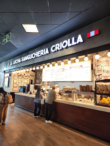 Located at the Jorge Chavez International Airport, La Lucha is a popular food chain that has delicious sandwiches. Unlike other locations, this one features a special deal that includes Chicha Morada and Small Fries. Even though it's busy at the airport, the service is fast, and the food is consistent with the other locations.