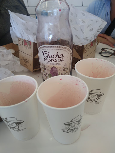 Read moreFui con mi familia 05 personas compramos 05 sánguches de chicharrón 17.90 soles cada uno con un pequeño pan partido en dos y una microscópica cantidad de carne en cada uno, 2 papitas fritas muy buenas y una botella de chicha morada muy rica por cierto pero solo nos querían dar 2 vasos por insistencia nos dieron 3 siendo 5 personas. Nos quedamos con hambre Realmente no pienso regresar a este lugar por ende no...