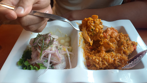 Read morePedí un arroz chaufa de pescado, estaba bueno, pero siento que le falta algo. También pedimos un dúo de arroz con mariscos y causa acevichada, el arroz estaba agradable pero parece que le habían puesto mucha salsa de tomate porque tenía un fondo dulce. Lo que sí me gustó fueron los tequeños de langostinos, muy ricos. La atención de la señorita fue rápida y amable, pero el ambiente no es tan agradable, es decir, había salsa de fondo y el tv estaba prendido con videos musicales, mucho ruido no es necesariamente apto para un restobar, no hay gracia. Es bueno en términos generales, pero hay cosas que...