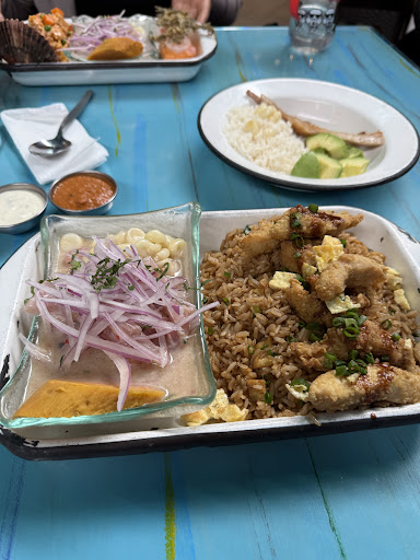Read moreEl lugar es muy amplio y bonito, quizás no es lo usual pero el día que fui, en uno de los ambientes se le coló el olor del baño, que por cierto no fue nada agradable. Respecto a la comida, pedí un duo de ceviche + el arroz norteño, el primero tenía demasiado ajo y el segundo, me pareció una burla que solo tenía un langostino y dos pedacitos minúsculos de tentáculo de calamar (o pulpo). Quizás en el plato grande de arroz norteño solo sí hay más mariscos, pero, en todo caso, si tanto les cuesta gastar sus ingredientes en un dúo, mejor no lo pongan en la carta, porque para lo que cobran, es realmente decepcionante. Respecto al sabor del mencionado arroz: 5/10, es cumplidor pero no es exquisito. El chicharrón de calamar, es muy normalito, aunque las yucas que acompañan, unas sí les quedan crocantes y sabrosas y otras medio duras en el medio. Lo más rico fue el ají, el picor ideal, hace que cualquier plato que no es destacable mejore sustancialmente su sabor. Las bebidas heladas como agua, gaseosa te las dan con vaso de metal, sugiero en verano solo usar vasos de vidrio pues la bebida en metal (con este calor) se calienta en 2 minutos. Las fuentes de fierro enlozado pues, no estoy en contra pero hay algunas que ya están para reciclar, pues están demasiado desgastadas y parecen sucias, la experiencia de comer en ellas bajonea todo lo demás. Hay mucho ruido en el local y si a eso además le sumas el volumen alto de la televisión o música, es imposible conversar sin gritar. La atención sí es A1, los chicos súper amables, rápidos y bien atentos. Creo que sería un buen point si mejoraran...