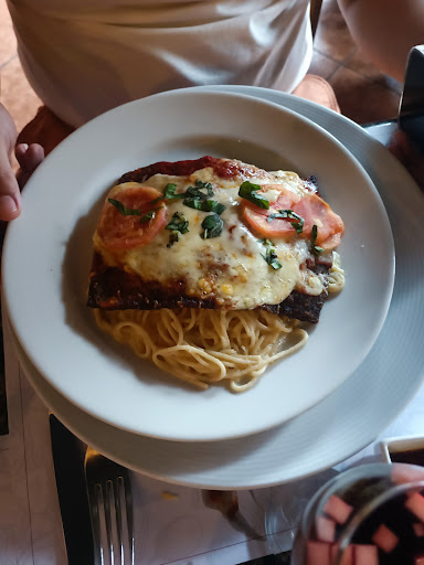 La comida es normal, no es ni rica ni mala. Me sorprendió que los únicos acompañamientos en la mesa fueran orégano y ají para pizza, tuve que pedir aceite de oliva. Pedí Piccata de pollo, la pasta a la crema estuvo muy sabrosa, sin embargo, la proteína de pollo que la acompañaba, estaba dura, seca por dentro, tuve que hacer mucha fuerza para cortarlo con el cuchillo. La sangría no sabía a sangría, solo era vino con manzana picada. En los platos que llevan pasta, le ponen adornos florales o de frijolito chino y no le ponen queso parmesano, pero se puede pedir aparte, no te lo llevan por iniciativa. La atención a la mesa estuvo promedio, atendieron los pedidos, solo que no están muy atentos a los pedidos que le corresponden a cada comensal y preguntan de quién es cada vez que traen un plato de fondo. También apagaron el aire acondicionado y tuvimos que pedir que lo prendieran, a pesar de que era un día muy caluroso.