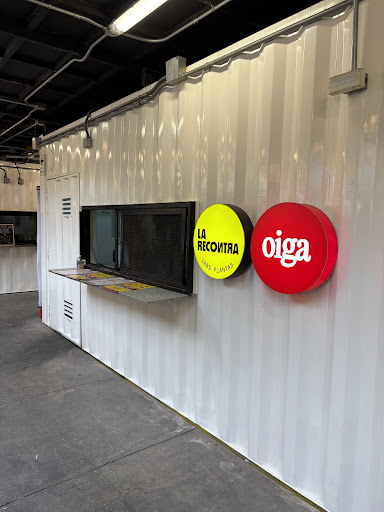 This is not a restaurant but a food-truck style courtyard with several order-at-the-counter, take-out food businesses that have shared picnic tables and chairs in a central courtyard. There are a couple of other businesses, so it is a good spot for large groups with disparate interests (although I think La Recontra is the only one to have vegan offerings).
