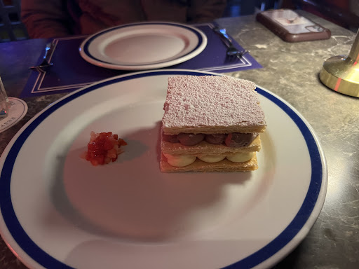 We stopped in here, looking for a new spot to try dinner. They made a big deal about the fact we didn’t have his reservation, even though all of the tables were open except for two. Somehow they were able to find us a table. The Decor is a little bit on the nose, but, low lighting was nice. They definitely have the French attitude down lol. There is clearly a wide selection of wines and the cocktail list was interesting and varied. We ordered lemonades the bread service (which does have a fee by the way) mushroom ravioli, and the the chicken special which came with mashed potatoes, veggies, and gravy. For dessert, we ordered mil foglie Napoleon. The baguette bread service was nicely toasted in the oven but is not truly French baguette so don’t get your hopes up. The butter was excellent though - high-quality sweet cream butter probably from France (I couldn’t tell since they removed the label too quickly) and it would have been nice to have a bit more butter (only one pat to share for two rolls). We really liked both of our main dishes. The mushroom ravioli was clearly made in house with a wonderful sauce and honestly, this is the best chicken I’ve had in Lima. It was perfectly juicy and succulent and crispy outside and the gravy was expertly prepared and a perfect compliment to the mashed potatoes and fresh veggies. I honestly would go back here just for this special so I hope they have it on their menu frequently. The dessert was just OK, they are heavy on the liquor in the dessert which I’m not a huge fan of. The lemonades were tasty and not too sweet. Overall, we definitely loved the food, the service was a bit lacking, our server had many tables to attend to, and we found ourselves at several times throughout the meal, trying to get his attention. Overall I recommend- and maybe get a...