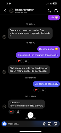 What a ripoff and absolutely disgusted with the way my transaction went down with them. We arenât from Peru, we came for a trip with friends. Prior to the trip I reached out via IG to see how getting in would work. We were a total of 8 people and they reached out that they would be willing to give us 5 free entrances with the purchase of the other 3. Well I had asked if we needed to do something or if this would all work at the door? They responded, yes at the door. Well we got there and the bouncer who thought he was an officer, let me know that no thatâs not how it worked. We needed a QR code to get in. And thatâs how many people were getting in at the same time that we had shown up. Something I wasnât given nor was there any information pointing to needing that prior in my conversation with them. We ended up having to pay to get in 100 soles per person. The drinks were lousy and the environment was not as elite as I had seen it to be. There was a lack of circulation in the place as well. Was way too muggy and hot. It was such a shame because we were truly looking forward to having a good time and it ended up messing up our night. Whatâs worse is that when I wrote them to let them know how dissatisfied I was they told me that the free entrance was based on availability and timing, lack of accountability. Yet, there was people getting in for free with the QR codes at the same time that we had shown up. And the club wasnât full at that time either. It started getting packed at around 2:30am-3am. Felt extremely taken advantage of. Iâm posting pictures of my...