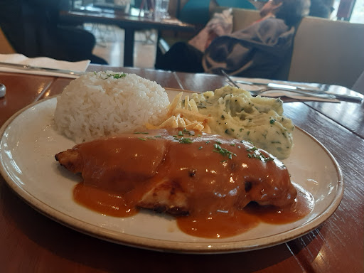 Read moreEl día de ayer fui en la tarde para tomar lonche. El aire acondicionado estaba fuerte cuando afuera la temperatura estaba fría y garuaba. Pedimos 3 chocolates calientes, 1 pan com pavo y 2 panes con pollo bbq. Primero trajeron las bebidas pero por el aire acondicionado, se enfriaron super rápido. Esperamos como 40 minutos a que llegarán los panes, y cuando la mesera vino, trajo solo 2 de los 3. Le dijimos que se llevara los chocolates para que los caliente, que trajera azucar y servilletas porque no las habían puesto, y el pan faltante (que según ella había confirmado que era 1 pero yo pedí claramente 2). Ese último sandwich llegó en menos de 10 minutos. Las bebidas después de calentadas ya no sabían igual, el pan con pavo sabía solo a cebolla y limón. Lo.unico que realmente estaba rico era el de pollo bbq. Deberían de traer a la mesa las bebidas junto con la comida, no que primero uno y en la larga espera del otro, se enfrían las cosas. Y no, el lugar no estaba lleno como para...
