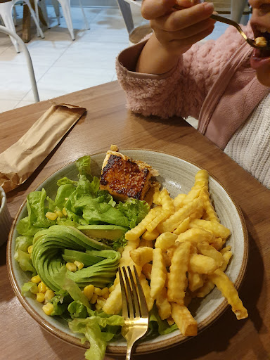 I ordered a chicken wrap (s / 19) it was bigger than expected 🙌🏻 also I tried hot chocolate (s / 10), it came without sugar. It was simple, not as good as I expected. They have the option of replacing regular milk for almond milk but charged me s / 4 more.