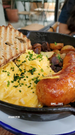 So this was our second time at mö and we returned because our first experience was indeed awesome, the sandwiches were delicious and the french toasts too. This time around though, it was a completely different experience, the dish you see on the image attached looks beautiful to the eyes but in reality that bread was hard and dry and the gourmet potatoes were greasy and burnt. We also ordered a grilled cheese sandwich we had ordered on our first visit and the quality was nowhere close to that one time we had it, sadly i didn't take a picture of it to make a comparison but it was: significantly smaller, the bread crust was not crispy at all like a good grilled sandwich should be(try 'el pan de la chola') but it was also accompanied by these potato chips that were mushy and noticeable old, they were not crispy and fresh and far from the original type of potato (which is purple and more premium) they served the first time. We did mention these concerns to our waiter who after a while came back with another grilled cheese sandwich that was slightly better in quality but still not like the original, he was also kind enough to let us know that they did change the type of potato chips because of supply issues and that the mushiness was due to them using the leftovers from the day before (?). I would comment about the pancakes but i think the point was made. We will still return one more time tho, hoping for a different experience since this may be a problem with the time of the day we went to have breakfast dishes when it was...