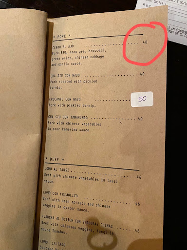 In the menu, Cerdo al Ajo costs 40 soles and Lemonade costs 9. After we finished our dinner, the waiter handed us the bill, where the prices for the two items went up to 45 and 12, respectively. Since those prices do not match with our memories, we asked to see the menu again. They were quite prepared for this and brought two menus, saying that the price on another menu—one that nobody ever gave us—should apply. After we firmly protested, they finally agreed to charge us only the amount shown on the menu that we were initially given. After we finished the payment, the waiter abruptly grabbed the bill back and stared at us rudely as if it was us causing them trouble, rather than the other way.
