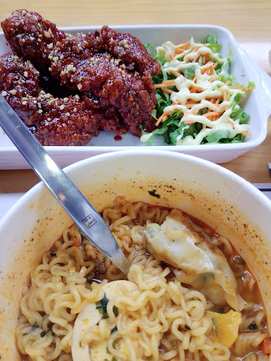 Read moreFuí el día de hoy al restaurante y la atención fue pésima, se demoraron 20 minutos en traer la carta y 30 minutos en venir a anotar nuestro pedido, los meseros pasaban atendiendo a otras mesas que llegaban después de nosotras y nada que les importaba que a nuestra mesa no venía nadie, al final tuvimos que ir a quejarnos que no nos atendían, cuando nos atendieron se demoraron un montón en traer la comida, todas las otras mesas ya se estaban retirando y a nosotras aún no nos llegaba nuestro pedido completo, se olvidaron de traernos la sopa y después de 30 minutos que nos trajeron nuestro "último" plato, tuvimos que acercamos para hacerles acordar que también pedimos una sopa instantánea de 15 soles. Las mesas estaban muy pegadas, y la comida no vale la pena por el servicio, porque tienen cosas ricas, pero la atención lo arruina todo, aparte el pollo frito coreano no lo recomiendo, más que pollo es hueso y está seco para ser "pollo...