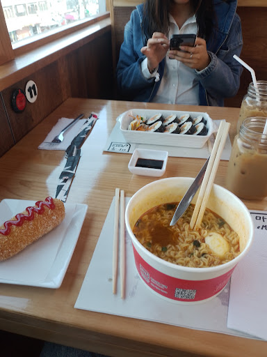 Read moreLe pondría 5 estrellas si no fuera por la mesera que me tocó, cero empatía y amabilidad. Por lo demás, el lugar súper bonito, ambientado al estilo de un real restaurante coreano, te quitas los zapatos antes de subir a tu cojín y sentarte cómodamente a comer, la atención es rápida y la comida todo bien, los precios son lo mejor gente, cómodo y lo justo, el nivel de picante está en la carta, todo organizado, los toppings son sus respectivos precios. Les adjunto imagen, pedí una banderilla de puro quesito y buena cantidad que viene, me costó 12 soles, el cafecito helado me costó 8 😋 . No había probado ese ramen, lo recomiendo bastantee, estaba riquísimo, ya viene con un...