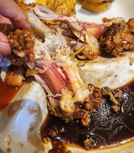 Comida: he ido otras veces por su pan con chicharrón y su surtido y me ha gustado. Pero esta vez decidí probar algo nuevo y decidí por su ronda de alitas, para empezar te sirven en una fuente donde no te entregan platos individuales o al menos un plato para colocar los huesos sin tener que ponerlo en la fuente , sabiendo que estas compartiendo con otra persona , eso resulta completamente asqueroso, luego su salsa búfalo es casi parecida por no decir igual a la bbq, un leve picor , pero luego todo igual , ahora lo que si me fastidio es que tooooooodas sus 16 alitas estaban cero cocidas (adjunto pruebas) , ese pollo por poco y se podía revivir. Completamente decepcionada.