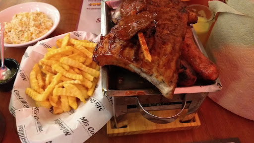 Nos ofrecieron una oferta por S/. 157.54 Incluia 400g de costillas a la BBQ (aproximadamente, y siendo optimista, 80g a 100g de carne, el resto huesos), 2 palitos de anticuchos, dos chorizos, una porción de ensalada de col tipo KFC, una porción de papas fritas tipo Mediterráneo Chicken, dos postres a elegir (picarones, helados, etc), y una jarra de refresco también a elegir (chicha, limonada o maracuyá).