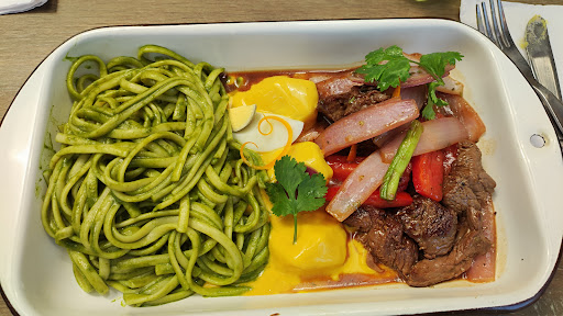 Read moreLlegamos por un tiktok que nos recomendaba el lugar , nos tomaron el pedido de las bebidas y los fondos , sin embargo veíamos desfilar todas las bebidas y ninguna era para nosotros , a pesar de que esas mesas habían llegado mucho después que nosotros , vimos al mozo intranquilo , pareciera que hubiera comedio un error , pero no nos avisó de ello , luego trajeron una sola bebida de las que habíamos solitado , la historia se repitió con los fondos , vimos que el plato que habíamos pedido , se lo daban a otras mesas , menos a nosotros. Sorpresivamente después de un largo tiempo de espera , llega nuestro plato pero a la mesa del costado , ellos lo rechazaron , el mozo lo llevó a cocina y luego nos lo trajo a nosotros al darse cuenta del error. La comida , el saltado llegó con un bloque de cebollas juntas , duras y amargas, tallarín de huancaina sin sabor , insípido , al igual que el tallarín verde , jamás preguntaron el término de la carne para el lomo. Bebidas bien, se demoraron pero por qué no traían a la mesa. Sopa menestron , bien , pero todo nuestro pedido...