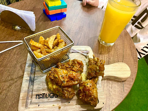 Read moreNativos es un restaurante de comida rapida existe Barra libre de 40 y 45 soles. Este último fue barra libre de alitas , hamburguesas que siempre te sirven con papas fritas, las alitas me la sirvieron frias y su sabor se perdia por eso , por el contrario las hamburguesas estaban calientes y buenas, la BL incluye 1 vaso grande de refresco. Si vienes en auto No hay estación, en el local pero puedes estacionarte...