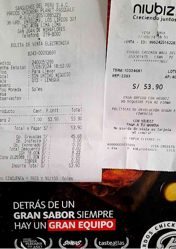 Hoy visité por primera vez con mi familia el local de Pardos Chicken en Mall del Sur, ya que usualmente asistimos al de Benavides en Miraflores, donde siempre hemos tenido buenas experiencias. Lamentablemente, en esta ocasión nos llevamos una mala impresión por la calidad de los alimentos.
