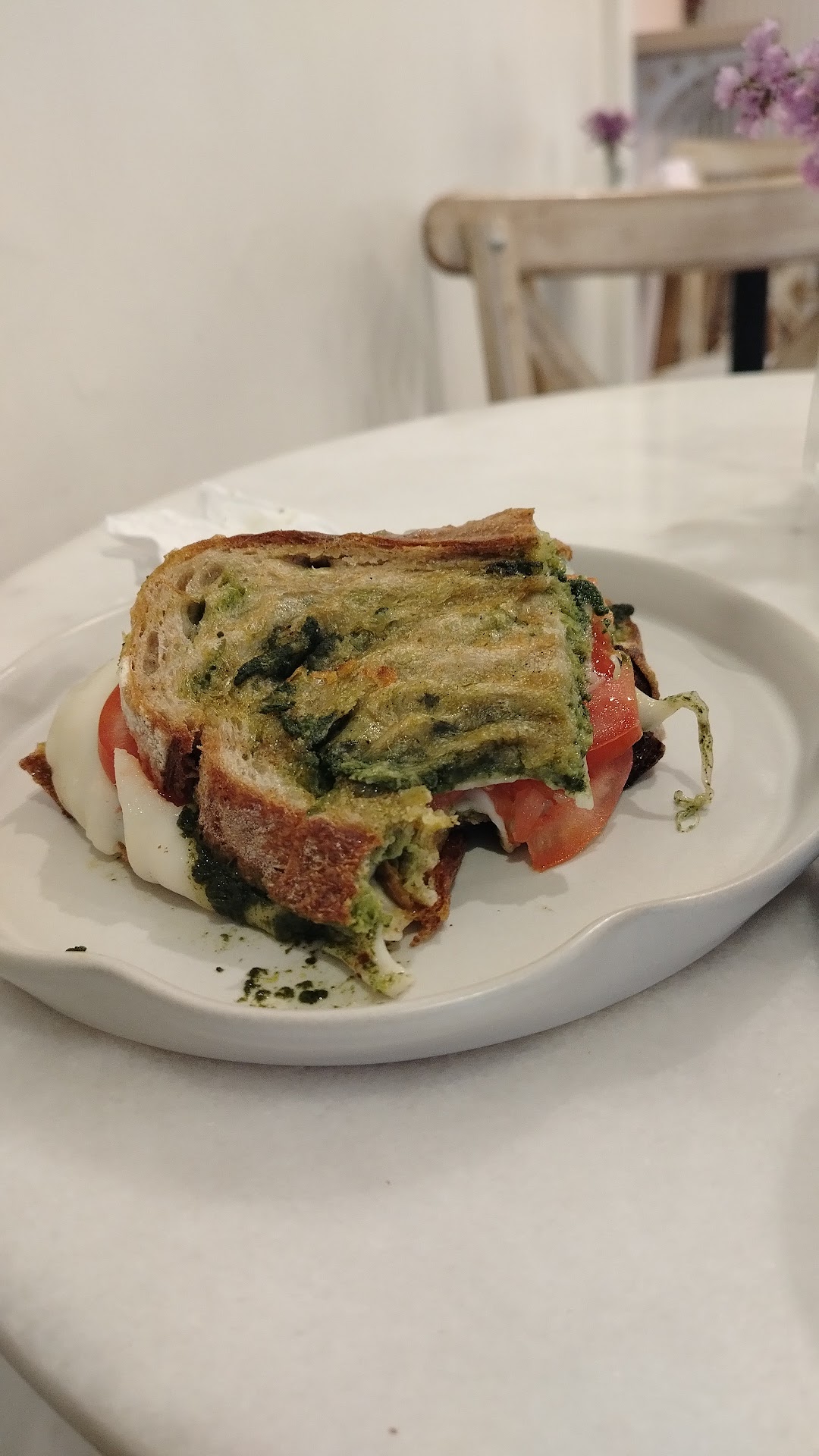 me pedí un caprese y un ice americano, y la verdad es que no lo volvería a pedir. se veía rico a simple vista, pero el sabor no me gustó tanto, ya que el queso sabía cómo ácido y amargo; el pan no parecía tostado, pq estaba durísimo y medio chicloso y el pesto amargaba demasiado.