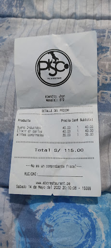 Comida italiana y una gran variedad de tragos que se pueden disfrutar en cómodos sillones. La música está a cargo de un DJ que hace mezclas a lo largo de la noche-madrugada (sábados). El punto flaco son sus servicios higiénicos que están ubicados en la parte central del local. Buena ambientación, paredes repletas de firmas y frases de los comensales y visitas del local. La atención es esmerada y gentil. El sabor de los platos es regular. Los tragos son buenos, se pueden encontrar más de 8 variedades del Chilcano. Cierran antes...