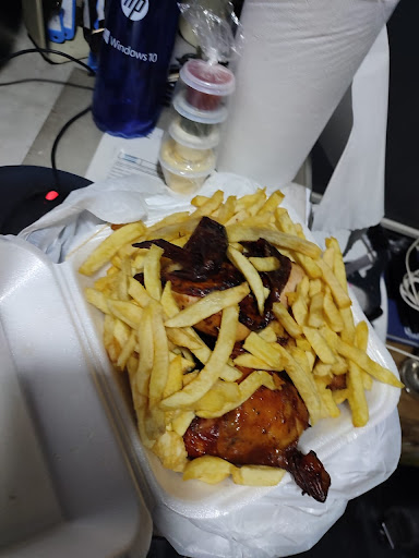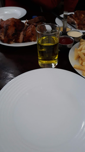 Uno de los más ricos pollos a la leña que he probado, muy sabroso y jugoso. Las papas fritas no se quedan atrás, bien hechas. El aroma a horno de leña invade los alrededores del restaurant mas no dentro del local, excelente. También comimos los siguientes platos cocidos a la leña: Costillas de Cerdo (42 soles), vinieron 7 costillas y estuvieron ricas pero un poco secas. Asado de Tira (74 soles), buena porción grande con muy rico sabor aunque un poco duras. Alitas de Pollo (38 soles), ricas y tiernas. Todos los platos llevaban el sabor característico con ahumado de leña muy rico, todos vinieron con bastantes papas...