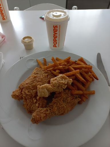 Bueno.. tuve una mala experiencia para ser sincera. Fui el día Martes 6 de Agosto, justo cayo feriado , fui a comprar ahí porque tenia mucha hambre y más porque Popeyes en mi favorito. Al momento de hacer fila si se demoro un poco pero comprendo que había mucha gente, entonces eso no me molesto. Mi molesta viene con la señorita que me tomó el pedido, en lo que sacaba el dinero me dijo en una voz algo alta "Te puedes apurar, no vez que hay mucha gente" y no le dije nada pero no me pareció que me haya hablado así, no se si me trató así por yo ser adolescente o por su estrés, pero siento que hay un cierto respeto, por algo las capacitan para poder atender bien. Luego me dieron mi pedido (muy rico por cierto, en eso no hubo problema) fue mi enamorado a recoger el pedido y cuando llego le pregunte si había cremas y servilleta y le dijo que no, fui a el mostrador a pedir las cremas y servilleta, consiguiente a eso ella procedió a agarrar las cremas y tirarlas en la mesa y le dije si me podía dar más porque somos 2 personas, me miró con una cara de aburrida y me dio otras, la servilleta ni apareció pero ya no le dije nada porque su mal humor y carácter me lo estaba contagiando. Con la comida todo bien pero con la...
