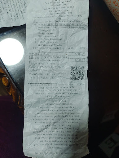 Read moreLugar amplio, colorido, con aire acondicionado. Especialidad: pollo a la broster. Ideal para ir en grupo, con tu pareja o si lo deseas; solo. Con respecto al menú, mí esposo ordenó un servicio de nuggets, papás a la francesa y gaseosa, todo estuvo muy sabroso, en eapecesp las papas fritas, estás venían condimentadas y crujientes. Las recomiendo. En mí caso, ordene un Rolls. Es tipo pan árabe, relleno con pollo, tomate, lechuga y una salsa especial. Mí servicio no tenía nada que ver con el que mostraba la foto del menú, ya verán en las fotos que monte, me sentí estafada, no tenía buen sabor y la presentación era fatal, nada comparado con el que me comí en KFC, ESESI ERA UNA DELICIA. Volveria a ir a Popeyes? Si, pero pediría otra cosa,ese Rolls; jamas...